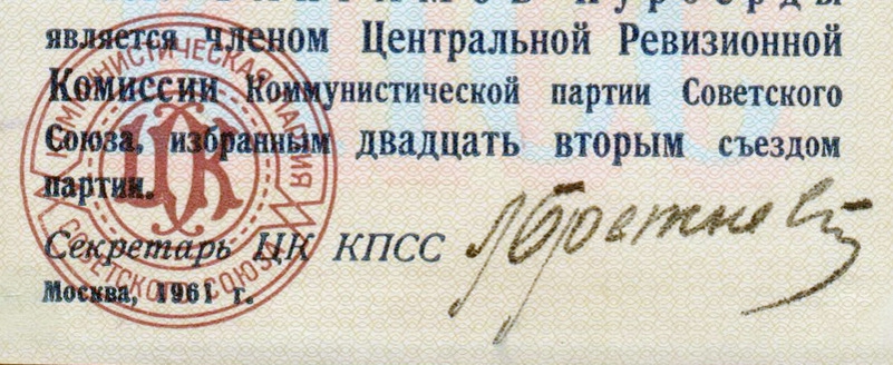 Служебные удостоверения членов ЦРК подписывал Генсек ЦК КПСС.
