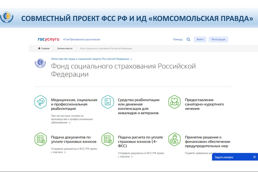 На портале «Госуслуги» реализована возможность обратиться за всеми государственными услугами Фонда социального страхования в электронном виде.