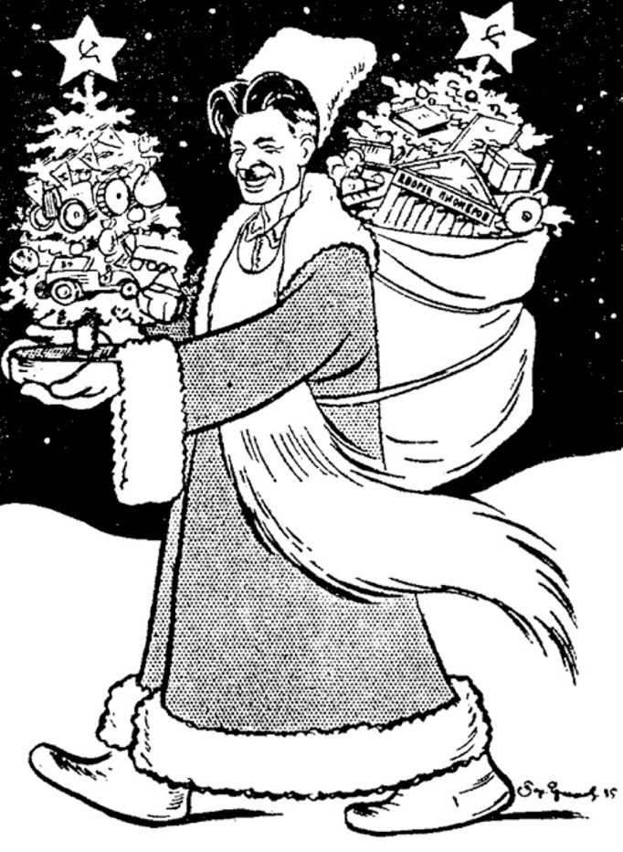 Газетный шарж на Павла Постышева в шубе Деда Мороза (1936 год).
