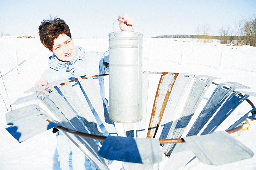 С помощью осадкомера определяют количество жидких и твердых осадков. Накопившуюся воду выливают в измерительный стакан с нанесенной разметкой.