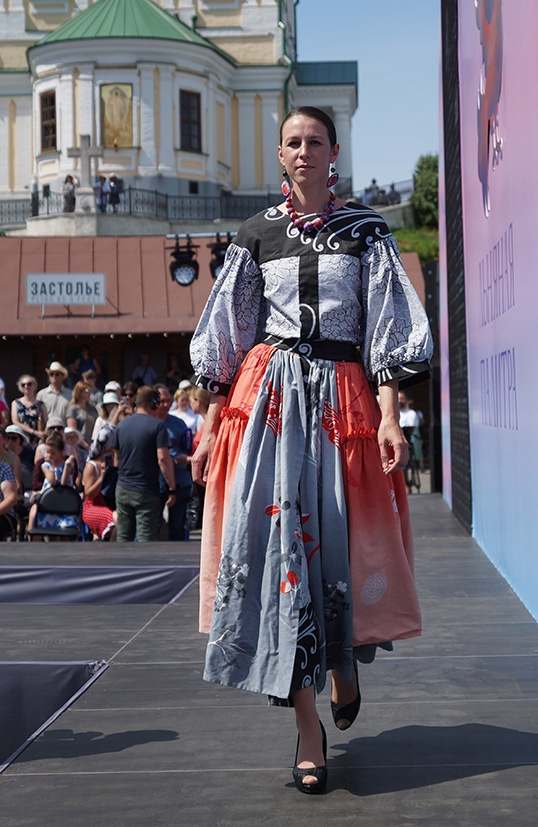 Коллекция Ольги Слатиной и Ирины Будрейки, победившая в авторской номинации, посвящена памяти профессора ИвГПУ Натальи Мизоновой. Проход сопровождал живой вокал.