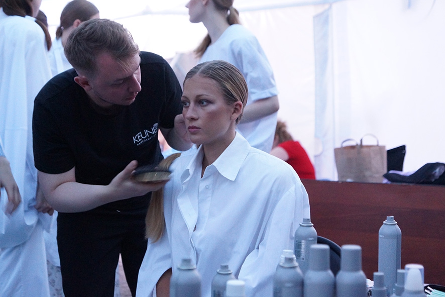 Выносливость моделей поражает: им пришлось вышагивать в вязаных свитерах в 30-градусную жару.