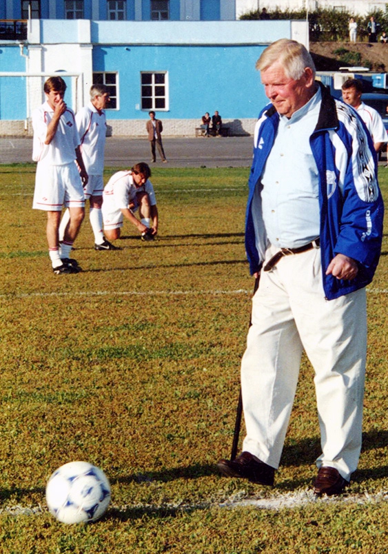 Анатолий Исаев в Иванове в 2001 году делает символический первый удар по мячу.