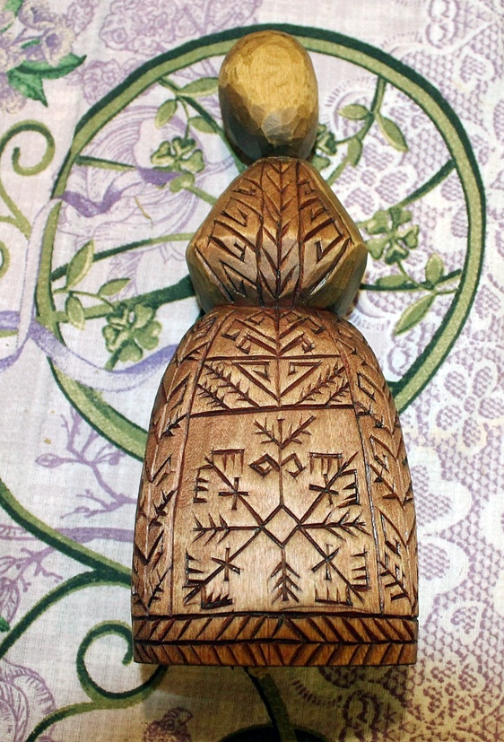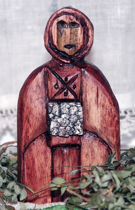 Например, панка "Плач мой о тебе" – один из наиболее древних архетипических образов. На игрушке слезы выточили борозды под глазами, которые мастер по древней традиции выжег металлом. Эта панка посвящена памяти и скорби о близких родственниках и далеких предках. Но основное ее предназначение – вымаливать тех, кто находится в опасном путешествии, рискованной ситуации или на войне. На груди изображен знак плодородного поля, ниже мастера могли написать икону или вставить ее символическое обозначение – например, кору березы.
