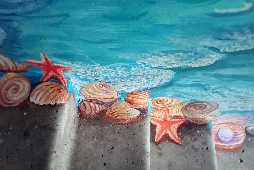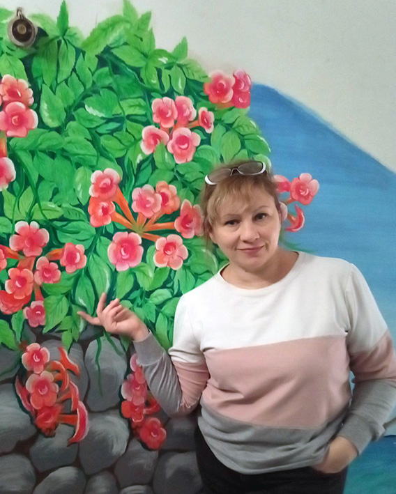 "Мы долгие годы каждое лето отдыхали в Крыму (в Феодосии жила моя мама). Но в этом году из-за операции и сложностей с транспортной доступностью я впервые туда не попала. Видимо, все самые теплые воспоминания о Крыме и вылились на стены в подъезде", – говорит женщина. Людмила Вавилова признает: любит рисовать в тишине, в одиночку, и, заслышав, что ктото заходит в подъезд, отправлялась в квартиру на отдых.