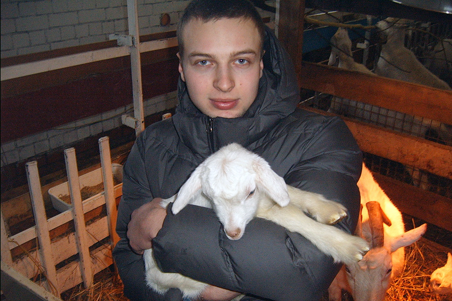 Родом мужчина из соседней деревни Козловки. Отслужил в ракетных войсках, работал инспектором Госстраха, фотокором в районной газете. Говорит, в семье раньше никогда коз не держали. Но жена взяла поросенка и решила выкармливать его козьим молоком. Завела козу, а та принесла трех козлят. Малышей хотели было продать, да Вячеслав не дал: жалко их стало.