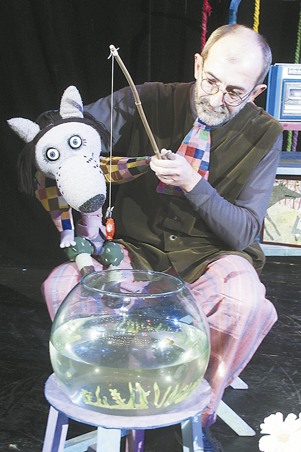 Борис Новиков часто исполняет в одном спектакле несколько ролей: виртуозно работая с куклой, он может играть и богатыря Добрыню Никитича, и Бабу-ягу.