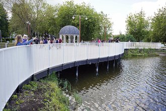 В обновленном парке появились беседка, детская и спортивная площадки, сцена, зоны для тихого отдыха, новые лавочки, дорожки, двухуровневое освещение, видеонаблюдение. Пруд очистили, а по его периметру тянутся удобные тропинки.