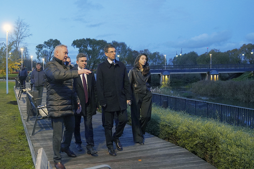 Игорь Щёголев вместе со Станиславом Воскресенским прогулялся вдоль реки Ирмес. Даже осенним вечером дощатая набережная сохранила особое очарование, подчеркнутое атмосферной подсветкой.