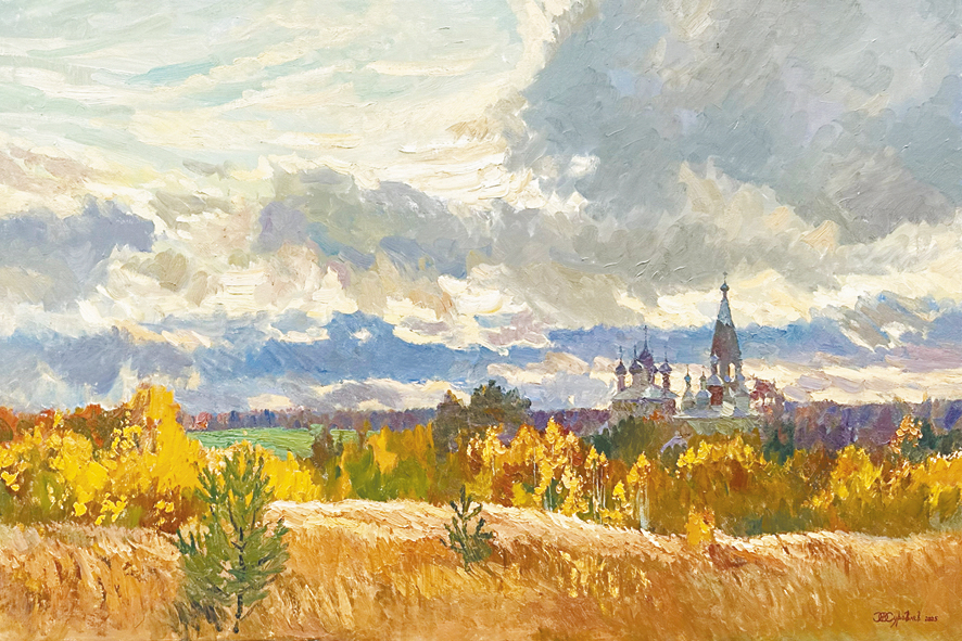На полотнах члена Союза художников – пейзажи наших малых городов: просторы Шуи, сказочный Юрьевец, Плёс, Гаврилов Посад… Одна из последних работ – осеннее Парское с его величественным храмом и полями. Всего мастер представил 24 полотна с душевными и трогательными сюжетами природы в разные времена года. И в каждом – своя мысль, это не просто красивый пейзаж. Друг Олега, художник Эдуард Донцов, так и назвал мастера – "философ русского пейзажа".