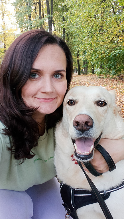 Старший кассир банка Ольга Кирилец признается, что собаку хотела с детства, но родители не разрешали заводить питомца. Исполнить мечту удалось, когда появилось собственное жилье. В социальных сетях Ольга увидела истории собак из приютов и решила, что возьмет именно бездомное животное.