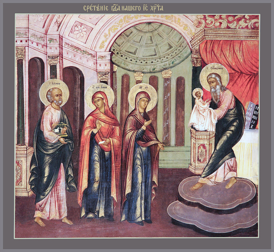 В храме Святое Семейство ждали двое – праведный старец Симеон и пророчица Анна. Симеону было обещано, что он не умрет, пока не увидит Спасителя. Взяв Младенца на руки, Симеон произнес слова, которые и сегодня звучат за каждым вечерним богослужением: "Ныне отпущаеши раба Твоего, Владыко, по глаголу Твоему, с миром..."