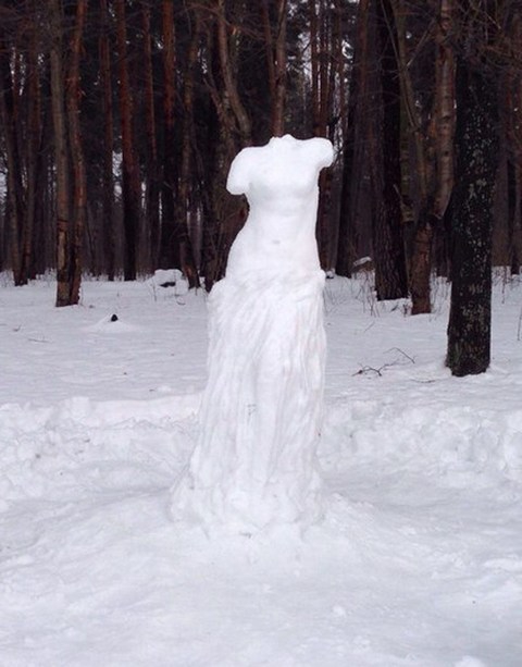 О том, что снеговики и снежные бабы нынче не те, говорит фантазия «строителей». Помимо громадного Кинг-Конга, покрытого розовой краской, на улицах Иванова были замечены и мультяшный герой Губка Боб, и усатый мистер в шляпе, и даже скульптура дамы без рук, чем-то отдаленно напоминающая Венеру Милосскую. Это произведение снежного искусства появилось в парке имени Революции 1905 года. Правда, богиня любви и красоты во время строительства потеряла и голову, а с приходом теплых деньков и вовсе растаяла. Но ивановцы надеются, что зима еще порадует снегопадами и материала для снежных фантазий будет вдоволь.