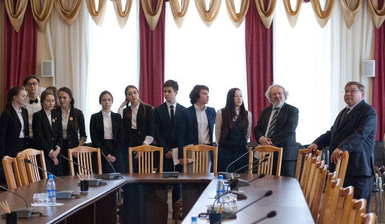 Он рассказал о прежних руководителях области, о личном отношении к каждому, об истории здания, имеющего статус объекта культурного наследия федерального значения, а также о том, как оно используется сегодня. Губернатор, как гостеприимный хозяин, пригласил школьников не только пройтись по коридорам здания, но и зайти в свой кабинет.