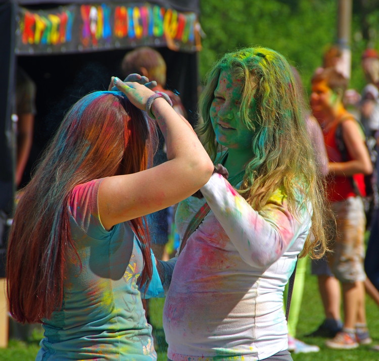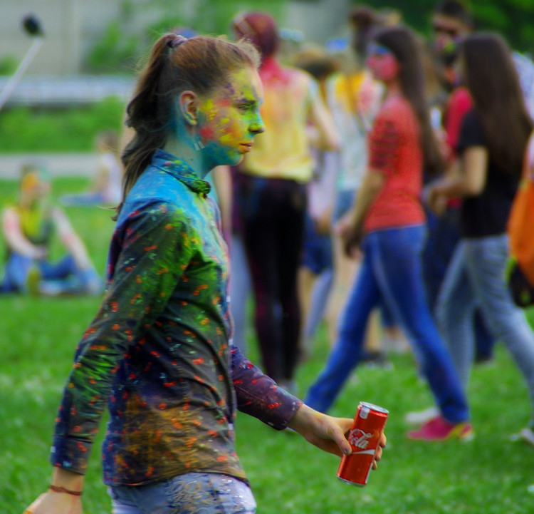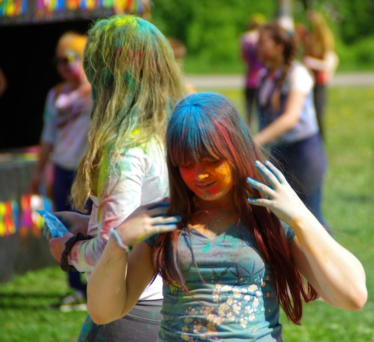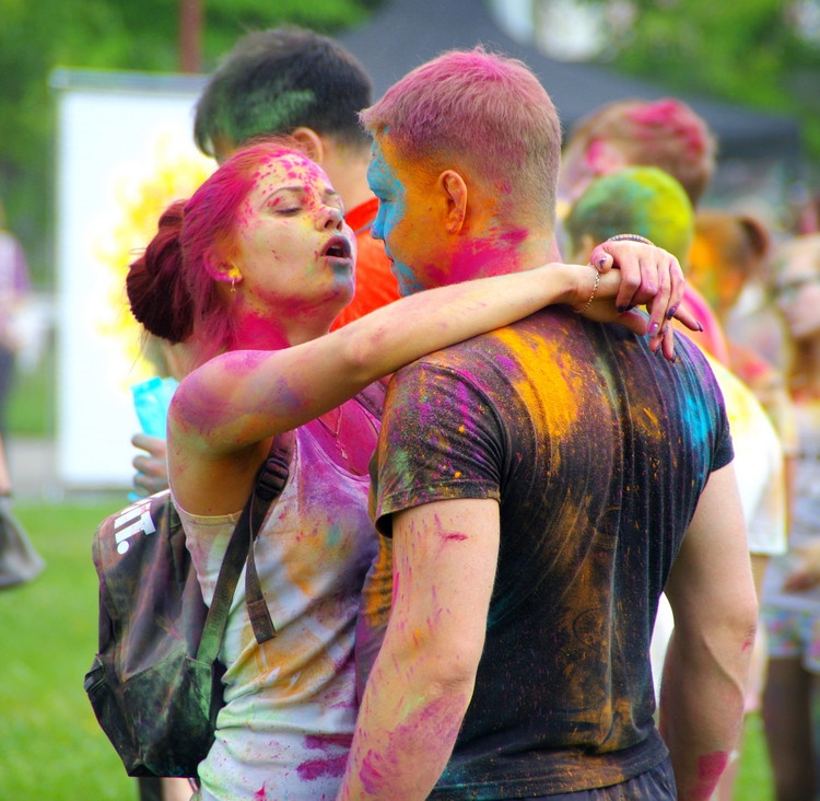 Холи – это сухие порошкообразные краски самых разных оттенков: от ярко-желтого до фиолетового. Краски абсолютно безвредны (содержат пищевой краситель), легко смываются с кожи, волос и одежды. Ими можно выкрасить лицо или тело, а также просто подбрасывать их вверх – тогда в яркий цвет на мгновение окрасится воздух.