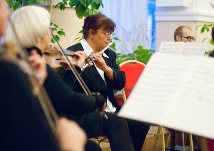 В этот вечер исполнили авторский балет главного балетмейстера театра Валентины Лисовской «12 стульев». Это не премьерный показ, но зрители встречали его очень тепло. Перед спектаклем всех любителей музыкального искусства ждал подарок – концерт симфонического оркестра под руководством дирижера Алексея Рябцева и молодых солистов театра Ирины Смолевой, Натальи Леляевой, Сергея Захарова, Максима Галенкова и Владимира Троценко.
