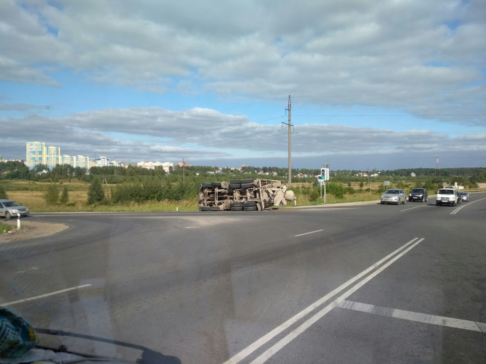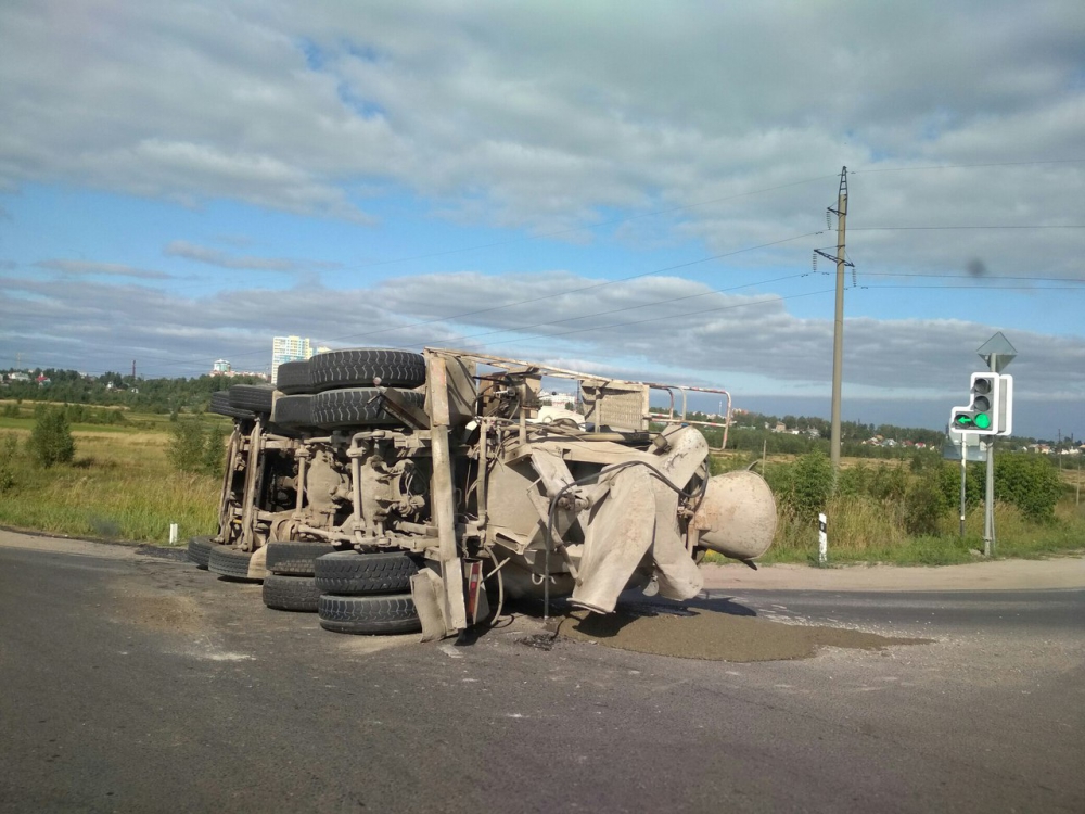 В Иванове у поворота на Беляницы опрокинулась бетономешалка