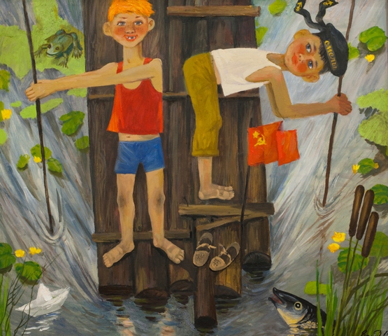 Но выставка интересна и обычным посетителям. Когда за окном мокрый снег и холод, здесь можно совершить веселое путешествие с загорелыми мальчишками («На плоту» Константина Васильева), полюбоваться девушкой, увлеченно рисующей картину в мастерской («Студентка» Сергея Макарова), побывать в летнем Плёсе, сияющем синевой Волги, и насладиться красотой букета («Рябина» Константина Васильева).