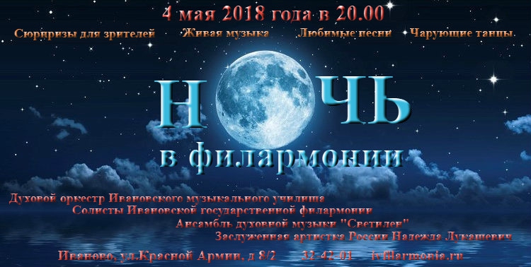 Более подробную информацию можно узнать по телефону (4932) 32-42-01, 30-07-81 (касса филармонии). Стоимость билетов - 100 рублей.