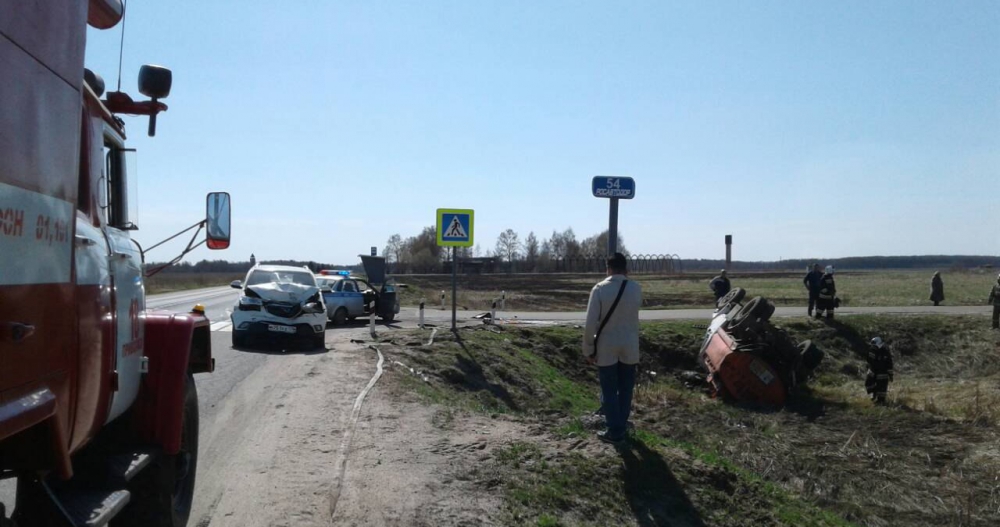Бензовоз опрокинулся и съехал в кювет. На обочину вылилось почти 2,5 тонны дизельного топлива.