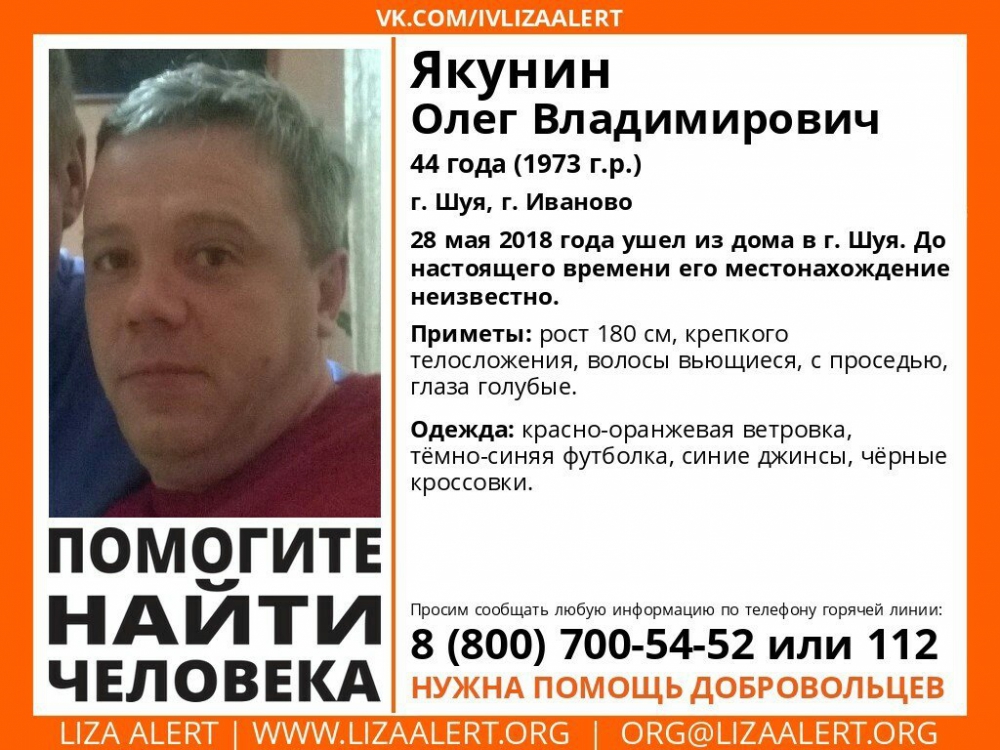 ПСО "Лиза Алерт" просит всех, кто видел пропавшего или знает его местонахождение, сообщать информацию по телефонам: 8 800 700 54 52 или 02, 102, 112(2).