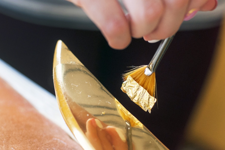 Специальная кисточка для нанесения сусального золота называется лампемзель.