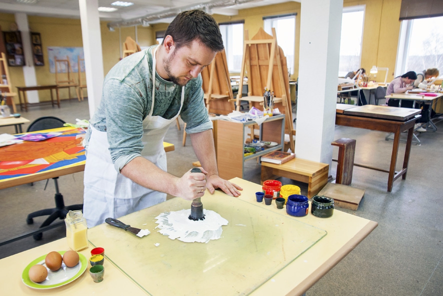 Краска для росписи состоит из яичного желтка и пигмента.