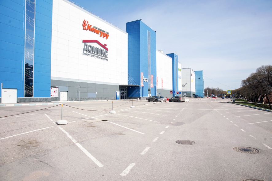Вечно забитые парковки торговых центров сейчас непривычно пусты.