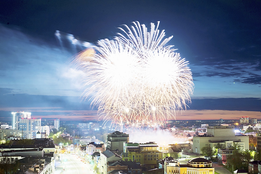 Фейерверк наблюдали из окон и в прямом эфире на телевидении и в интернете.