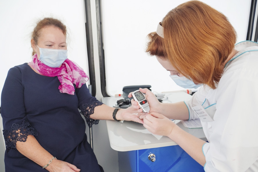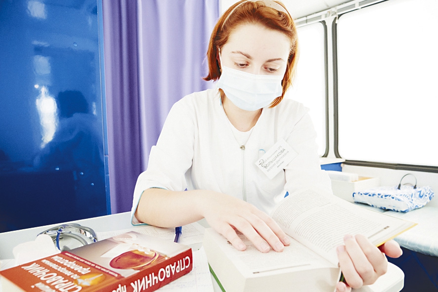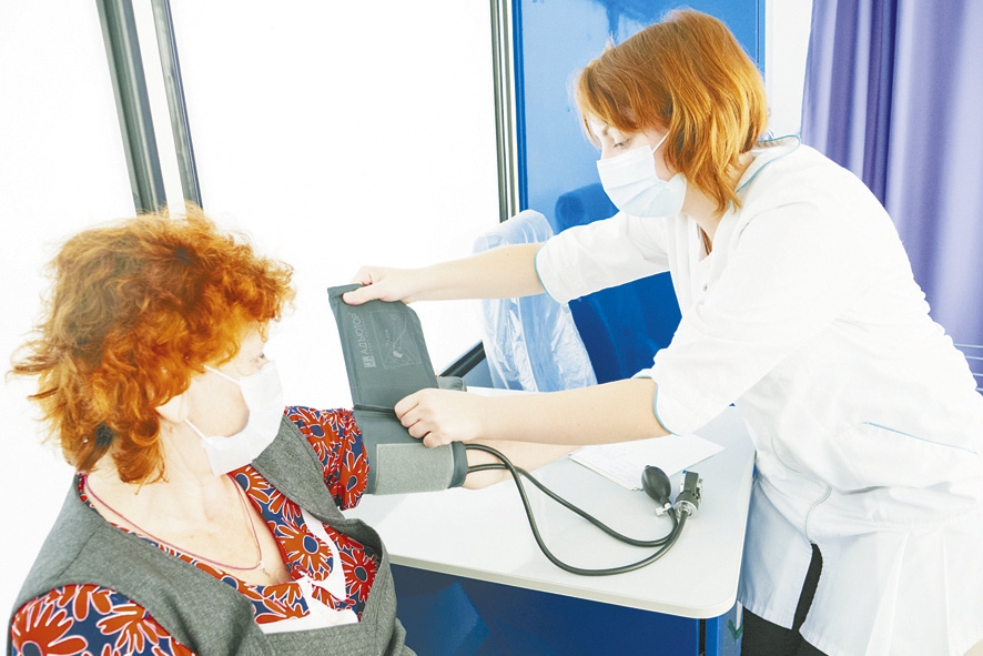 В мобильном фельдшерско-акушерском пункте можно провести медосмотр, измерить давление, пульс и проверить кровь на сахар…