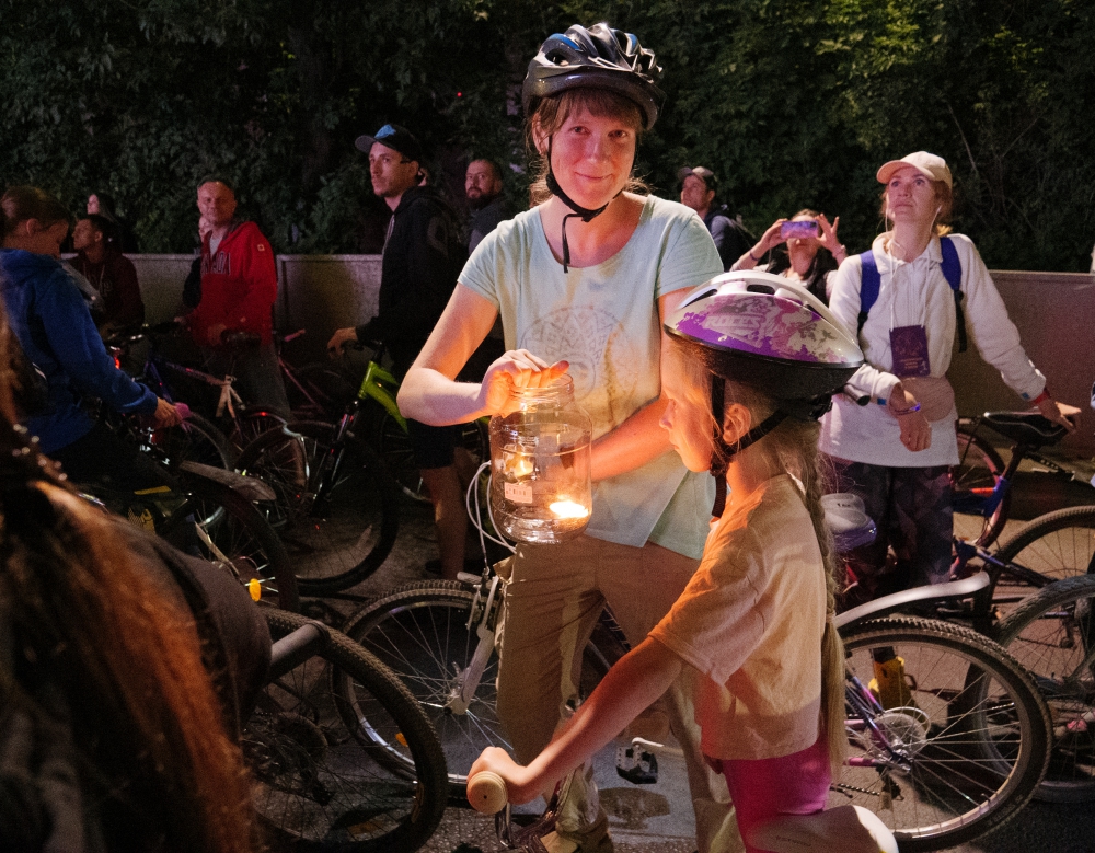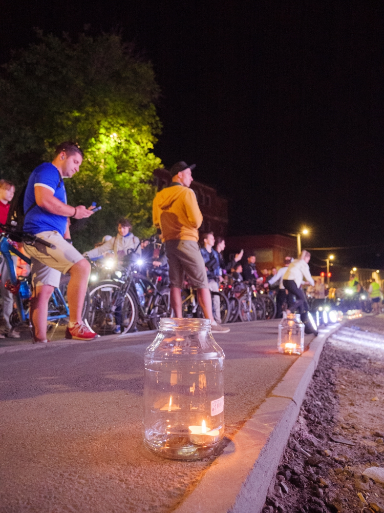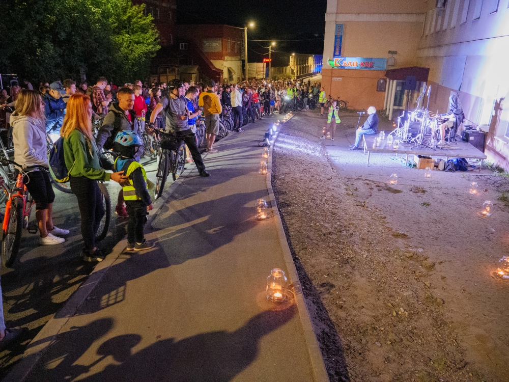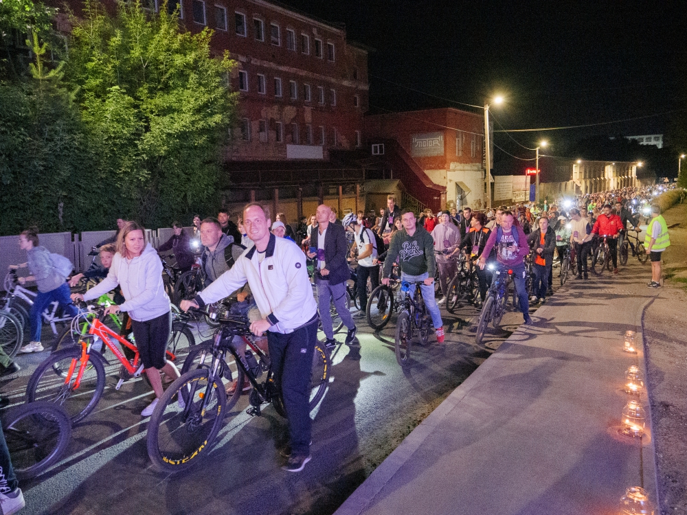 Колонны велосипедистов в четыре заезда с 20.00. Первой исторической точкой маршрута стала водонапорная башня на 3-й улице Чайковского, которую изобрел знаменитый инженер Владимир Шухов.