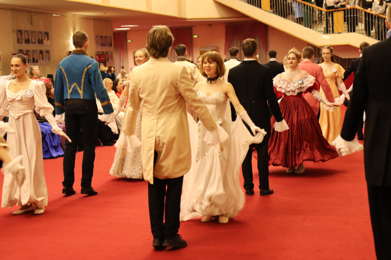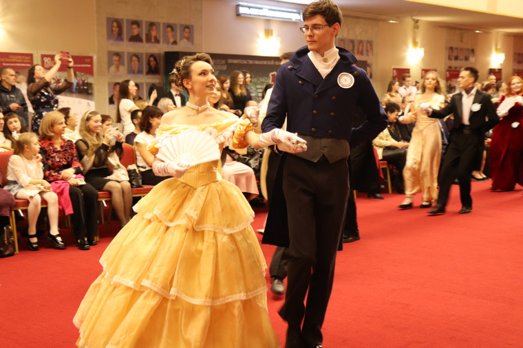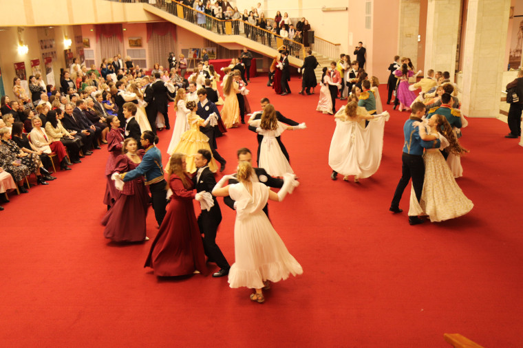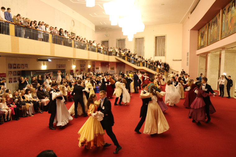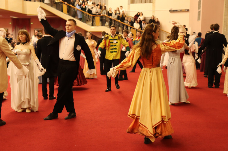 Участники погрузились в атмосферу балов XVIII–XIX веков. Студенческие пары продемонстрировали исторические танцы, которым они научились за два месяца подготовки к балу – полонез, полька, мазурка, хрустальный вальс, кадриль, менуэт и др. Гости также увидели выступление артистов музыкального театра и приняли участие в тематических конкурсах, посвященных эпохе Екатерины II и истории российской армии и флота.
