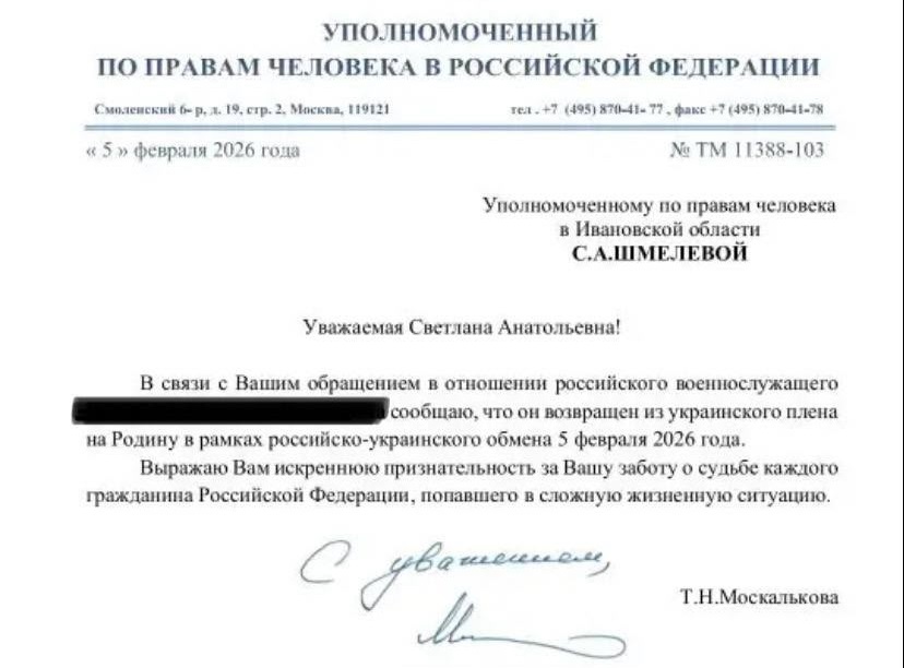 "Состоялся очередной обмен пленными, – пишет она на своей странице в социальной сети "ВКонтакте". – На родину возвратились 157 военнослужащих Российской Федерации. После всех испытаний вернулся и наш земляк, который находился в украинском плену. Его возвращение стало результатом напряженной работы различных ведомств, в том числе уполномоченного по правам человека в РФ Татьяны Москальковой, Министерства обороны, спецслужб".