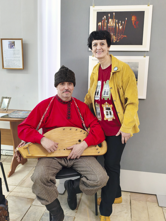 На открытии выставки Елены Малковой гостей порадовал гусляр из Иванова Евгений Светлояр.