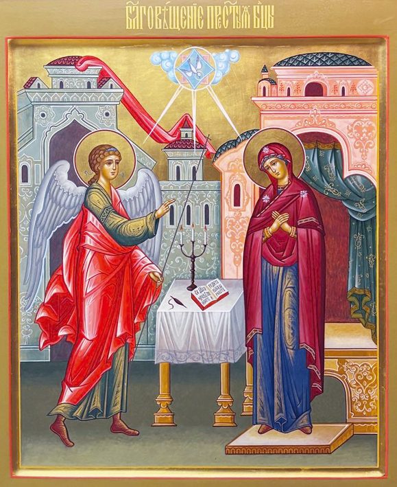 В основе праздника – рассказ евангелиста Луки. Перед Марией, обрученной с Иосифом, но еще не вступившей с ним в брак, предстает ангел Гавриил и возвещает, что она родит Сына, который станет Царем, "и Царству Его не будет конца". Дева недоумевает: "Как будет это, когда Я мужа не знаю?"