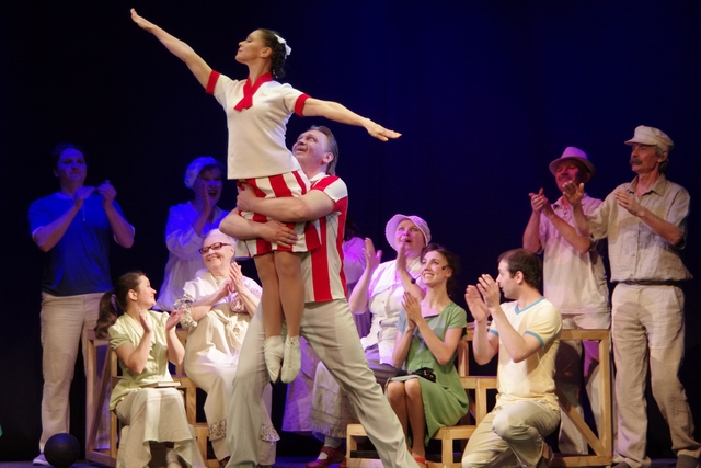 Так начинается премьерный спектакль «Он, она и война» в театре кукол (режиссер-постановщик – художественный руководитель театра Елена Иванова). Спектакль основан на песнях, посвященных войне, и письмах с фронта, которые пишет любимой девушке Шурочке молодой Иван. Но кроме судеб главных героев в спектакле прослеживаются судьбы тех, чье беззаботное прошлое мы видели в первой сцене. Кто-то стал медсестрой, кто-то ушел воевать на флоте, кто-то остался в тылу, чтобы помогать фронту. Благодаря оригинальной концепции спектакля, слаженной игре актеров и хорошим песням, которые звучат со сцены вживую (за что актерам отдельное спасибо), спектакль получился красивым и трогательным. На премьере многие зрители плакали.