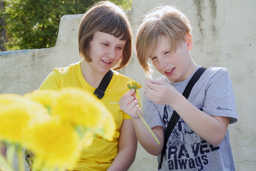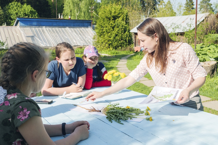 Ребята из ивановской арт-студии "SvetЛика" на ознакомительном занятии изучают строение одуванчика (они делают искусственные цветы из фоамирана).